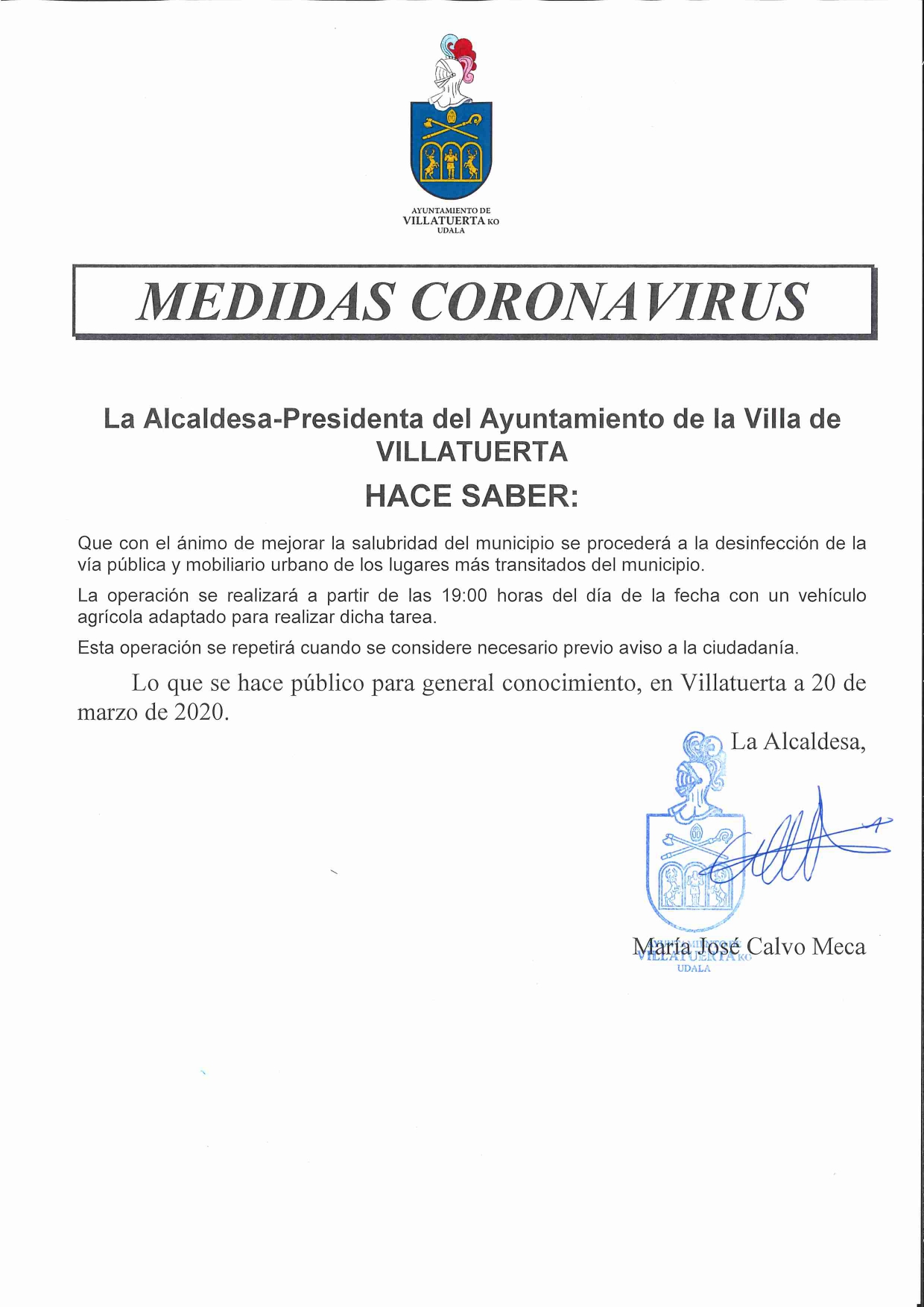 Con el ánimo de mejorar la salubridad del municipio se procederá a la desinfección de la vía pública y mobiliario urbano de los lugares más transitados del municipio.