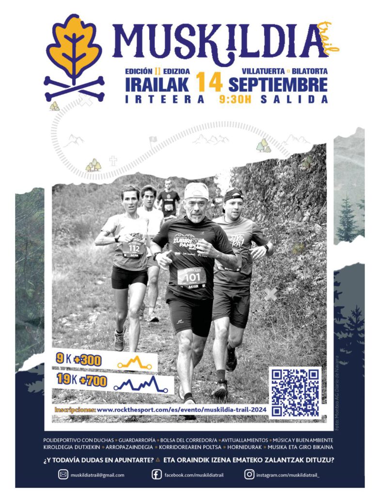El sábado 14 de septiembre va tener lugar la 2ª edición de la Muskildia Trail. Con 2 recorridos de 9 y 19 kilometros respectivamente y salida a las 09:30 desde el polideportivo municipal.