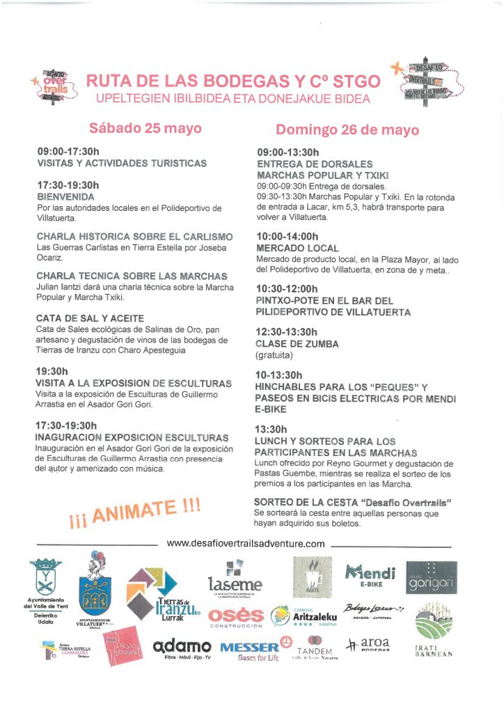 Los días 25 y 26 de mayo va tener lugar el Desafio Overtrails Ruta de las Bodegas y del Camino de Santiago en el que el Ayuntamiento de Villatuerta colabora.