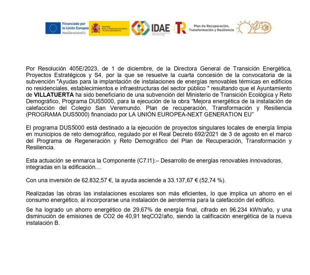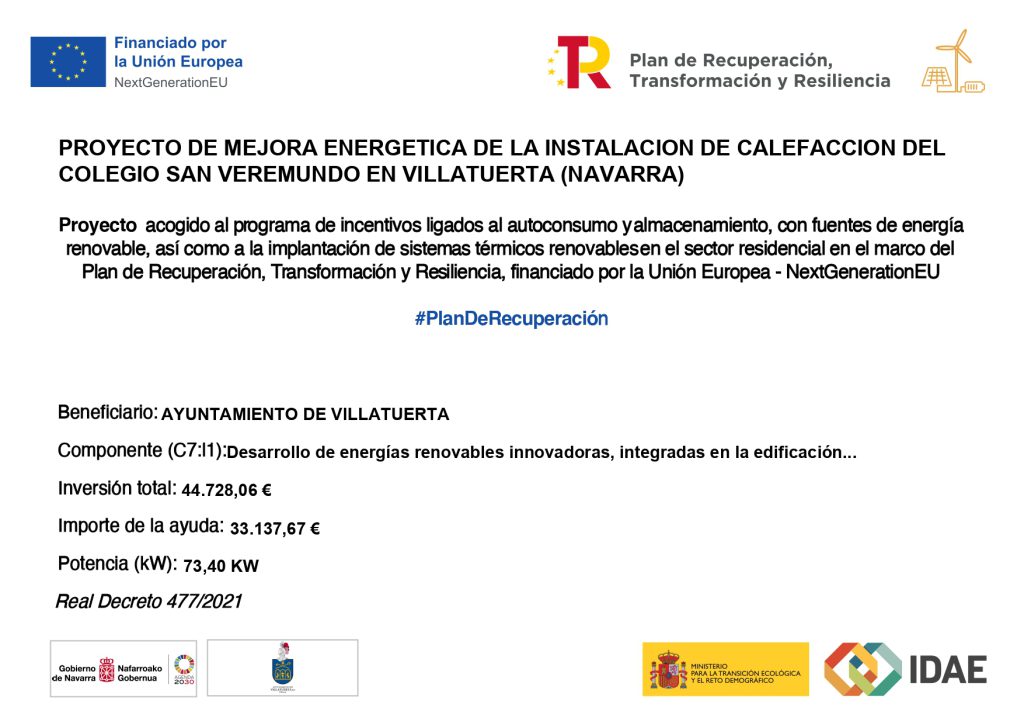 PROYECTO MEJORA ENERGÉTICA DE LA INSTALACIÓN DE CALEFACCIÓN COLEGIO SAN VEREMUNDO EN VILLATUERTA