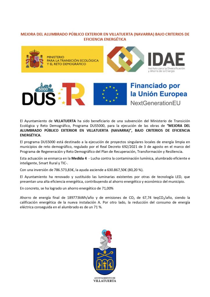 PROYECTO DE RENOVACIÓN DE LA RED DE ALUMBRADO PÚBLICO DE VILLATUERTA